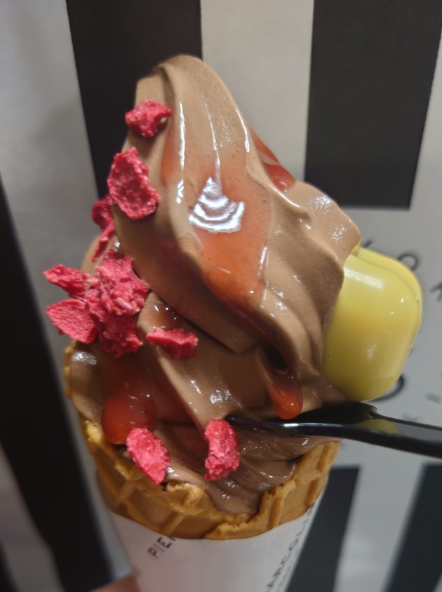 ピエールマルコリーニさんのソフトクリームを〆にイートインしてきました☆黄色いのはハート形のチョコです☆(角度で見えない・・・)