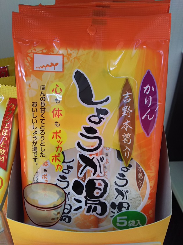 11月に入り朝晩は冷え込む日が増えましたね。毎年、冬に人気のしょうが湯今年も販売しています!体を温めるくず湯やカイロも販売中。乾燥する季節にはのど飴もオススメです。各種取り揃えています。お気軽にお立ち寄り下さい(*^_^*)