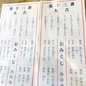 境内内の上知我麻神社で妻とおみくじを引きました。