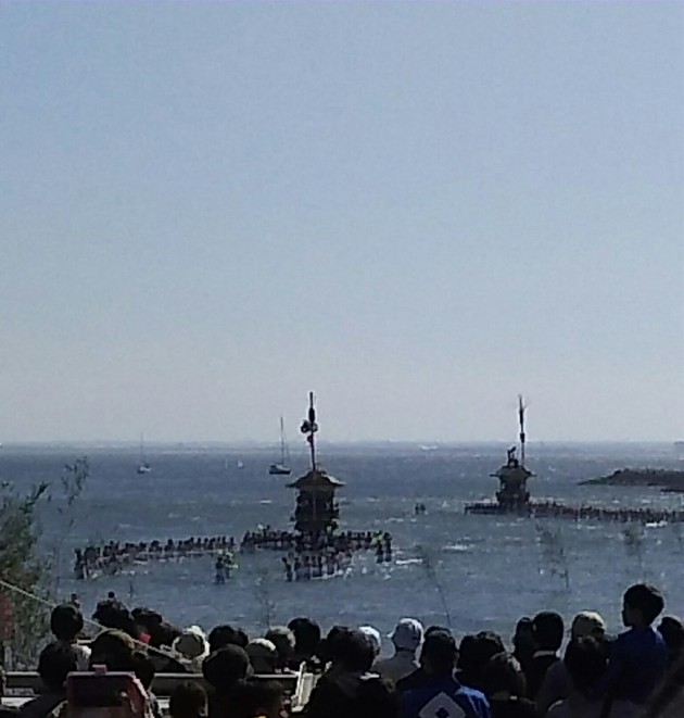 蒲郡市の三谷祭に行ってきました。今年は10月24日、25日に開催されました。二日目に行われる「海中渡御」が祭りの見せ場。巨大な山車を、氏子の男性たちが力強く海に曳き入れます。4台の山車が町内を練り歩き、最後は海に入っていく様子はまさに圧巻でした。