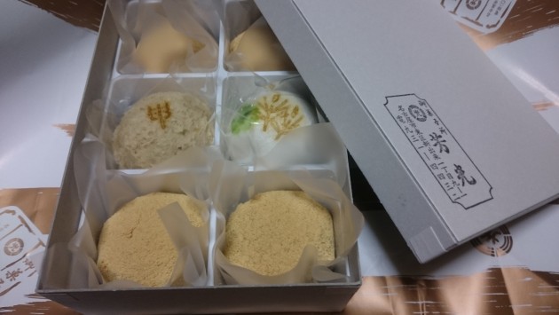 今回で2度目の購入となりますが、東区の名店「芳光」さんのわらびもち(上下)と真ん中は季節のお菓子です(すみません、名前忘れました。)わらびもちは真ん中にこしあんが入っていて、いままでのわらびもちとはひと味ちがうと思わせる逸品です★6~10月はわらびもちが溶けやすいので販売してないので、興味がある方は今のうちですよ~♪