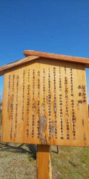 近くの公園に散歩してきました。よく来るのですが、梅公園の名のごとく、毎年梅はみごとです。立て札をよ~~く読んでみると、なにやら随所正しき梅のようでした。梅に近づいてみると!!梅の実がいっぱい。大きくなったら、どうなるのでしょう。身が厚く美味しい~と書いてあります。興味津々です。