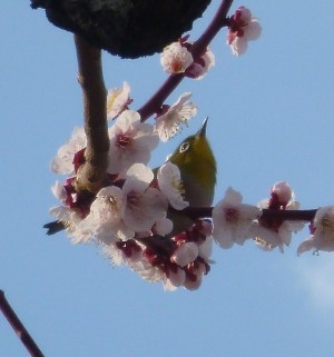 梅の甘い蜜に誘われ、メジロがいっぱい遊びに♪