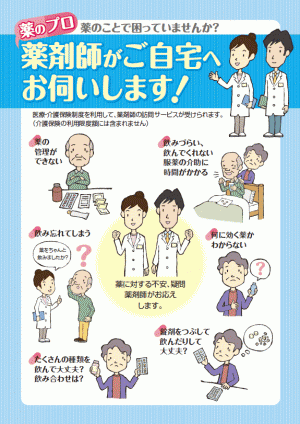 医師の指示のもと、薬剤師がご自宅などに訪問し、