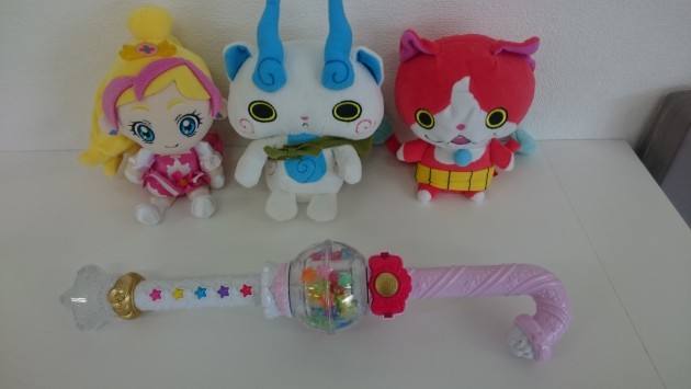 敏感な方はもうお気づきですね。プリキュアのステッキが新しいステッキに入れ替わってます☆今回はくるくる真ん中の部分を回すとパワーがチャージされて光ります☆このステッキ、女の子だけでなく、男の子にも人気のようです(*^_^*)