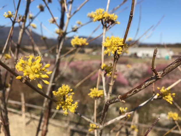 サンシュユ(山茱萸)が咲いているの見つけました。