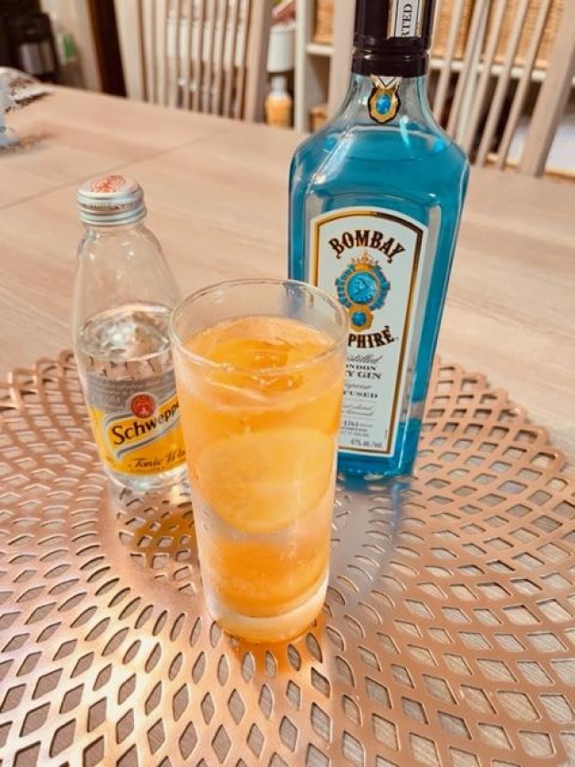 患者様からびわのお裾分けをいただきましたたくさんいただいたので”妻”がコンポートを作ってくれました!結構手間がかかったみたいですコンポートはそのままでもかなりおいしく仕上がってましたが今宵はコンポート入りのジントニックで。