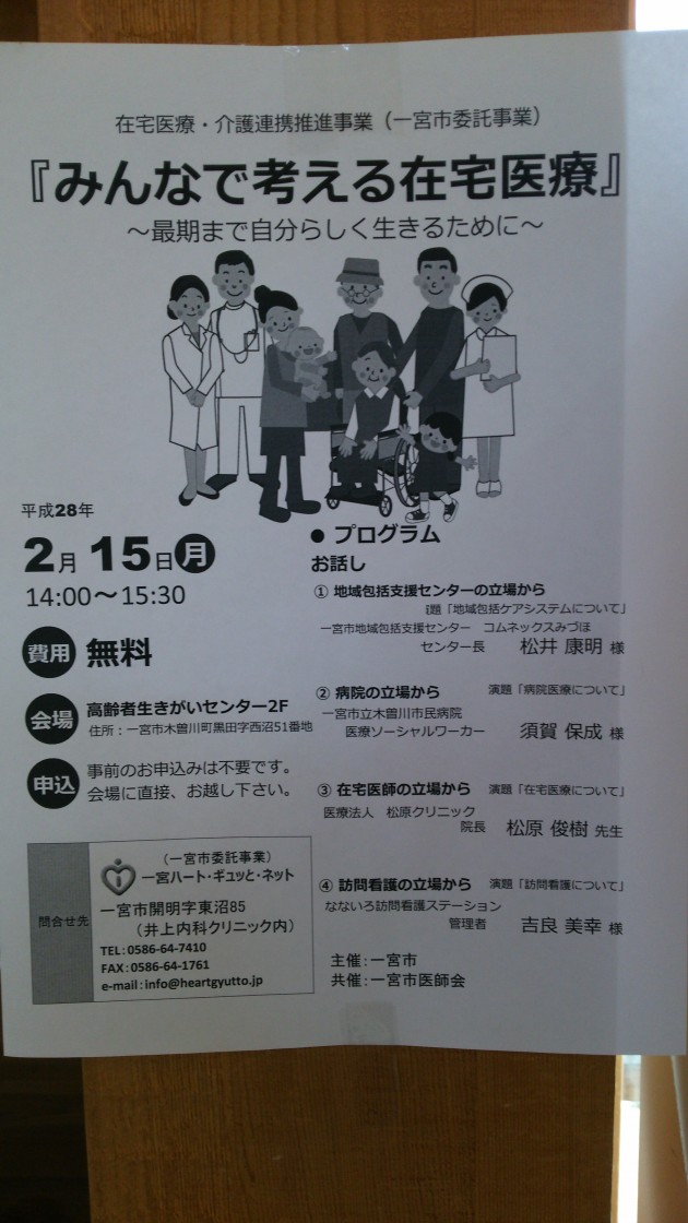 年が明けてから寒くなってきたので、体調を崩さないように気をつけましょう。お知らせです!来月、大変お世話になっている松原先生も講演される『みんなで考える在宅医療』が開催されます!!ご都合がよろしければ、ぜひ御参加ください。さとこまき調剤薬局営業時間月|火|水|金 09:00 〜 19:00 木 09:00 〜 12:00 土 09:00 〜 13:00 Y