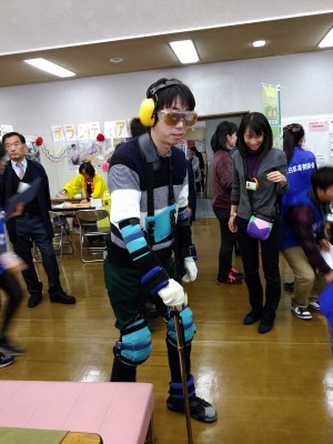 私も高齢者疑似体験をさせて頂きました。手足が動かしにくく、情報量も少なくなりとても心細く感じました。