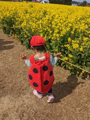 渥美半島 菜の花まつり2023年1月14日~4月2日まで9:00-17:00伊良湖菜の花ガーデンにて入場料大人(中学生以上)500円 小学生(未就学児は無料)100円菜の花満開でした♪暖かい日で春を感じました。コロナ禍にて中止していた衣装貸し出しも2年ぶりに復活。ミツバチとテントウムシの衣装あり。菜の花を楽しんだ後は、いちご狩り。あまーいイチゴ、たくさん食べました♪