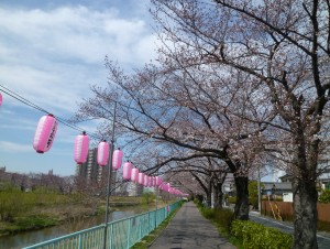 名古屋の桜の見ごろ予想は3/28~4/4とのこと。写真は3/28 11:00頃の様子。まだ咲き始め~3分咲きくらい。週末の暖かさで一挙に開花が進むのかな。天白川沿いには提灯が取り付けられていました。白い光のライトアップとは違い、オレンジ色の灯りが連なる様子はとても幻想的。夜桜見学もおすすめですよ。